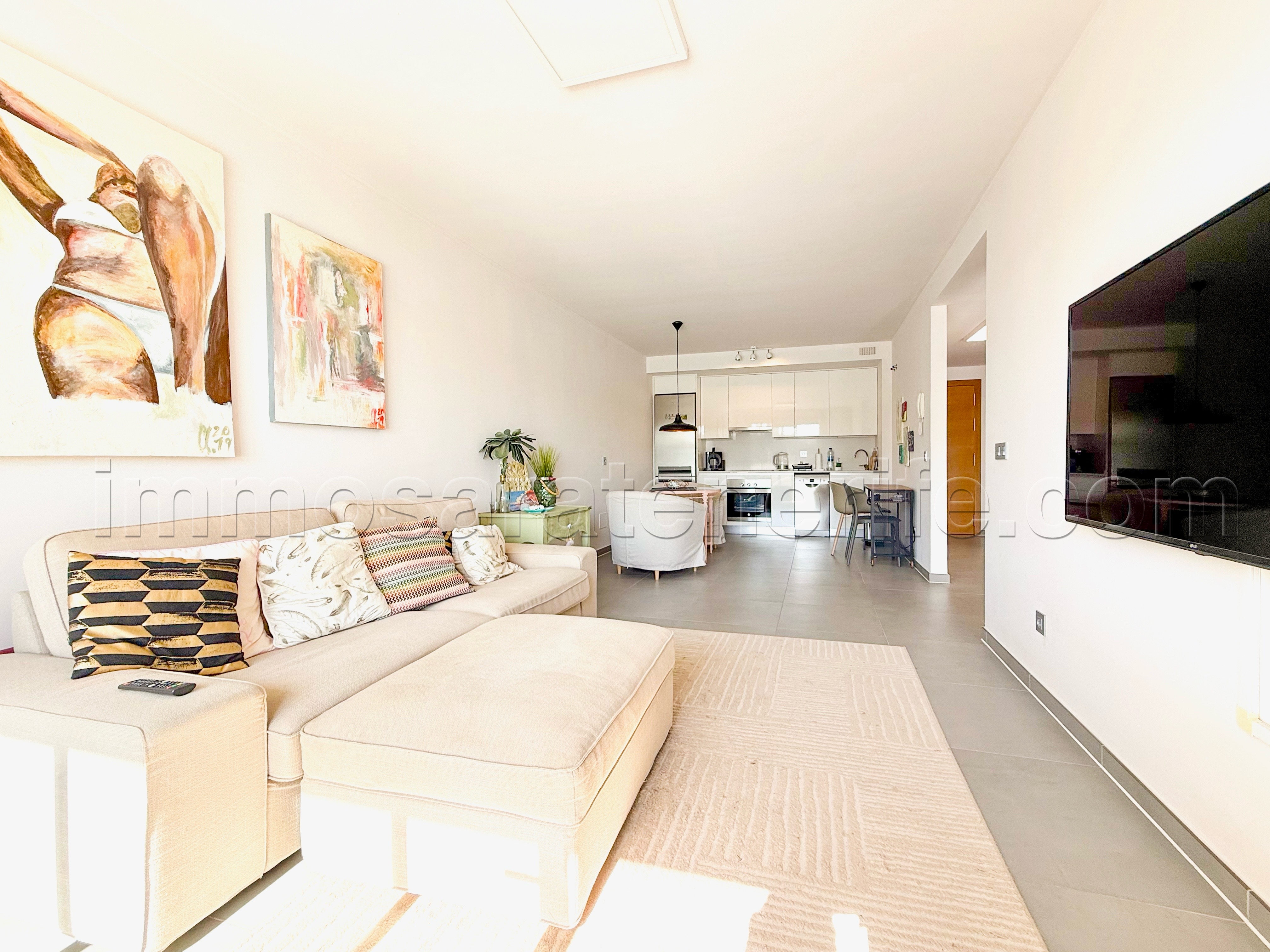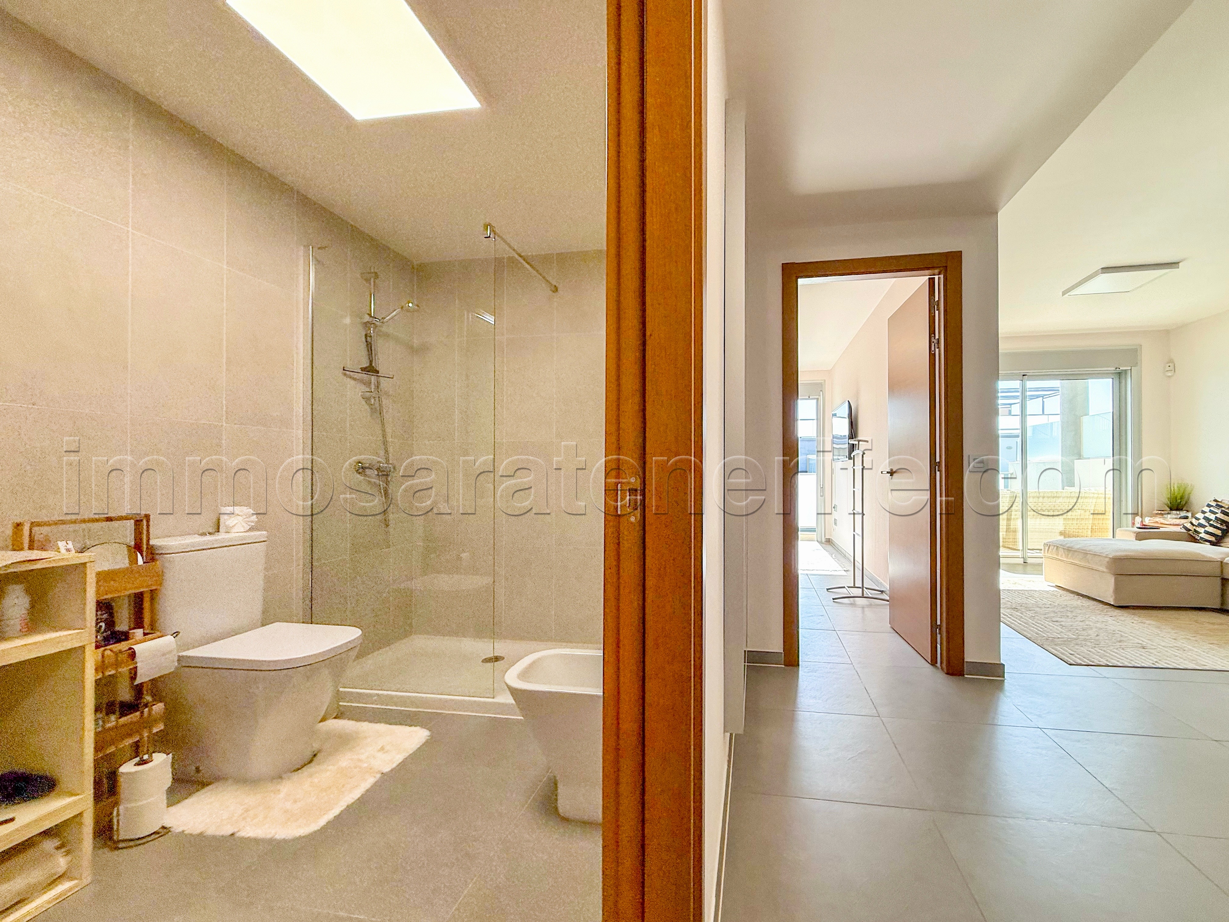 El apartamento se encuentra en el último piso de un reciente complejo con ascensores, hermosos jardines y una piscina climatizada.