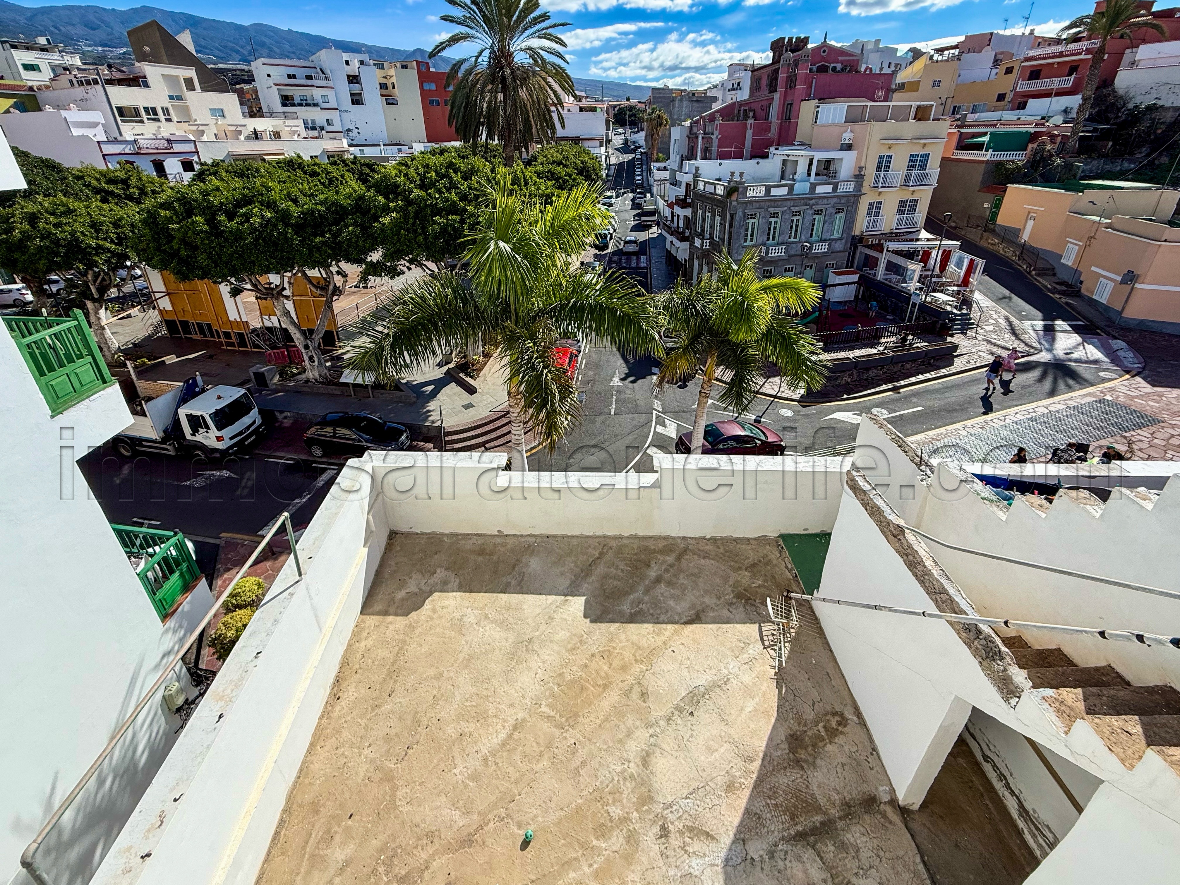 Et il y a une terrasse avec une vue latérale sur la mer et avec des escaliers donnent au toit.